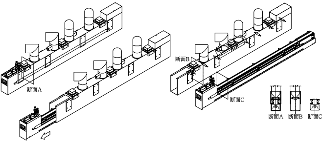 照射器はUVランプや反射板の寿命による交換,汚れの清掃など定期メンテナンスが必要であるが,長尺ランプを採用した場合,生産ラインに設置した後の照射器は直接メンテナンスを行うのが難しい状態であることが多い。そのため,特に長尺のランプを採用した場合には,照射器を生産ラインに設置したままでメンテナンスを容易に行えるよう,内部灯体のみを引き出す構造が求められる(図8)。