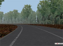 昼間時の山間部コーナーにおいて,LED視線誘導灯の適切な設置方法(取付間隔,取付高さ)を,VRの動画像を用いた印象評価実験により把握する。