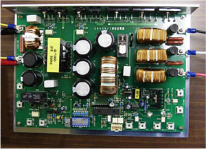 図4に直流電源部の写真を示す。デジタル方式のスイッチング電源で,各種通信機能を有している。ランプ始動直後は定電圧動作を行い,その後,すぐに定電力動作に移行する。電力制御の方法はA/Dコンバーターにより出力電圧,電流値を読み出し,マイコンにより電力計算を行って,その数値が指定電力値となるように,PWM生成回路を制御することにより行う。定電力動作を行うことによりランプのバラツキおよび経年変化をかなり低減することが可能となる。
