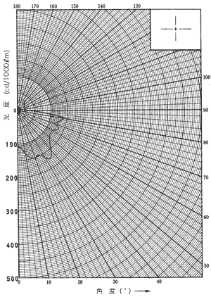 H6261の配光図を図4に示す。本商品はプリズム制御による屈折光として主に20~80°方向にわたって配光制御をしている(ピークは約35°)。