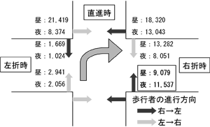 一方,交通事故と照明の関係は,国際照明委員会(以下,CIEと言う。)の調査では,道路照明の設置・改良により夜間事故が21%~76%減少した事例が報告されている9)ことから,夜間に発生する事故と照明には密接な関係が存在するものと考えられる。即ち,歩行者の被視認性の向上は,夜間に交差点で発生する交通事故の対策の一つとして有効であり,道路照明の改善が効果的となる可能性が高い。