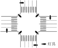 設置基準に示されている灯具の配置(図4参照)は,背景に連続照明が存在することを前提としているが,実際には局部照明となっている事例が多く,明るさが不足し,歩行者が認識できない恐れがある。この為,当社では,交差点の視環境向上を目的とした交差点専用照明器具(図5参照:以下,クロス・パズー™と言う。)を開発した。