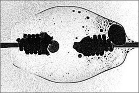 図8は波形1で点灯し大きな「ちらつき」が発生しているランプの,図9は波形2で点灯し「ちらつき」のないランプの,それぞれ500時間点灯時の電極形状である。