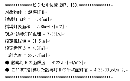 - 誘導灯計算結果出力ファイル名(誘導灯の指定面の輝度値:テキスト 図4参照)