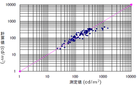 以上より測定値と計算値は,概ね一致していると見なせることから,フィールドでも実用レベルの等価光幕輝度が計量できていると判断した。