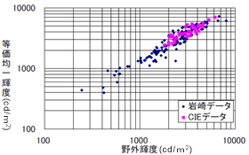図3.3 野外輝度と等価均一輝度の関係