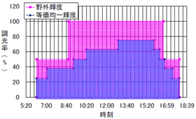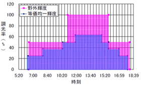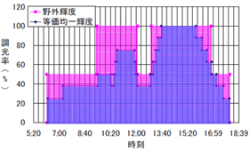 図3.11 野外輝度と等価均一輝度の調光率の変動