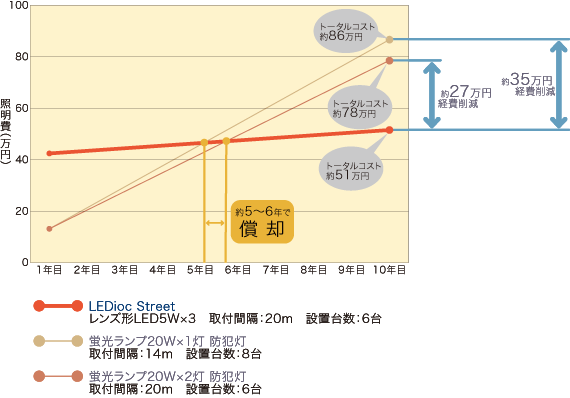 しかしながらLEDはまだ高価であるため初期投資額が大きく,上記の効果を持ってしても償却に5~6年かかるのが現状である(図3)。