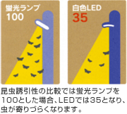 また,LEDを光源に使用することで,蛍光ランプ20Wと比べて虫が器具に寄り付きにくくなった(図6)。