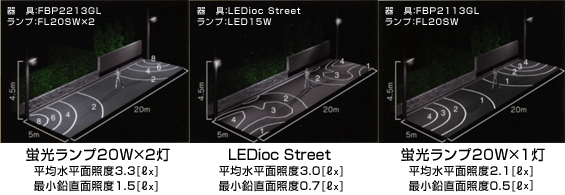 | ランプ | 蛍光ランプ20W×2灯 | LEDioc STREET ™ 15W | 蛍光ランプ20W×1灯 |