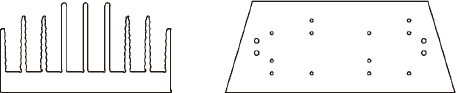 ヒートシンクは,1種類で配光3パターン全てに対応可能とした。また,放熱効果を高めることを目的に,器具内に収まる最大寸法にするため,形状は,断面の全体的な形状を凸形にし,なおかつ長手方向では台形にした。形状を図4に示す。