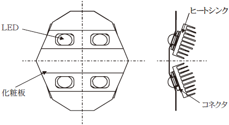この器具はデザインを重視した器具であるため,化粧板を設けることで,光源であるLED以外の配線,コネクタ,ヒートシンク等の器具内部は見えないようにした。例として全方向配光用のLEDを取付けた状態の化粧板を図5に示す。