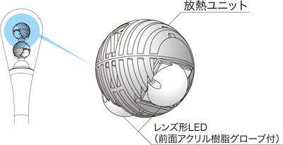 | 内蔵LED | 5W広角配光LED4個搭載 | 5W中角配光LED3個内蔵 |
