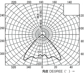 配光可変セード用ホルダとの組み合わせにより,一つの反射鏡で広照形・中照形・狭照形の配光が実現可能である。代表例としてSAW415の配光曲線を図3に,各配光における性能を表2に示す。