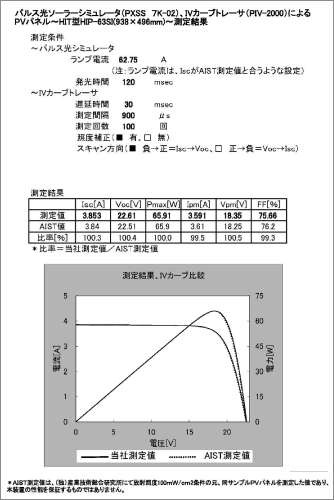 ロングパルス光ソーラーシミュレータ:PXSSによる測定は,(独)産業技術総合研究所による測定と同等な結果を得る事ができた。
