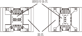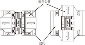 直付金具と頭柱付金具の2種類を設定した。直付金具は,キャノピー照明用として,頭柱付金具は,ヤード照明用として使用できるようになっている。器具と直付金具との組付例を図10に,器具と頭柱付金具との組付例を図11に示す。