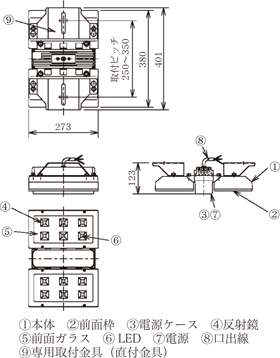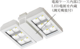 LED電源を内蔵で,安定器の2次側配線が不要な省施工形の照明器具となっている。電源電圧AC100~240V・電源周波数50/60Hz共用である。