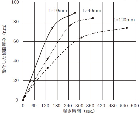 - 曝露時間が長くなると検知板の酸化はゆるやかに起こることが認められる。
