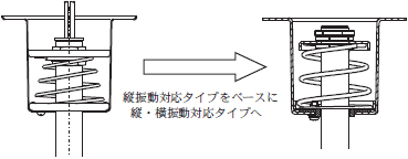 本商品では,従来品の縦振動タイプと同様に,フランジ内に防振スプリングを使用し,縦振動だけでなく横振動においても振動を吸収できる構造としたので,従来使用不可であった場所においても共振周波数10Hz以上であれば使用可能になった。