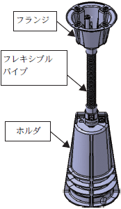 そこで,フランジ部分とホルダ部分のつなぎをフレキシブルパイプを使用し,横方向からの振動や衝撃を軽減する構造とした。