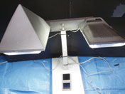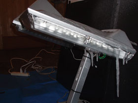 氷柱実験対象器具は,下記の写真5に示す様に,同一取付金具(仰角20度)に平行に取付けて,取付け位置の相違による環境変化の影響の無い設置方法とした。