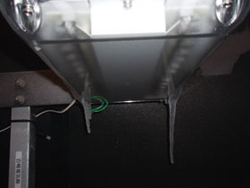 下記の写真6及び写真7は,低温環境下に8時間経過後の氷柱の発生状況を器具正面側から撮影したものである。