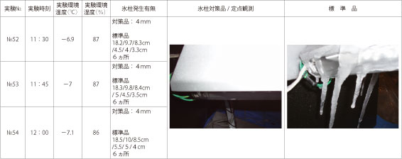 対策品は,実験の全期間を通して,顕著な氷柱の発生は認められなかった。