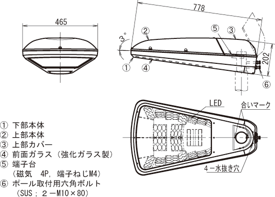 | ポールトップ | セット形式 (灯具形式) (電源形式) |
